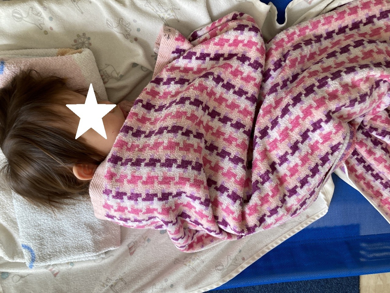 保育者と沢山おしゃべりして、ゆっくり寝落ちていました⭐