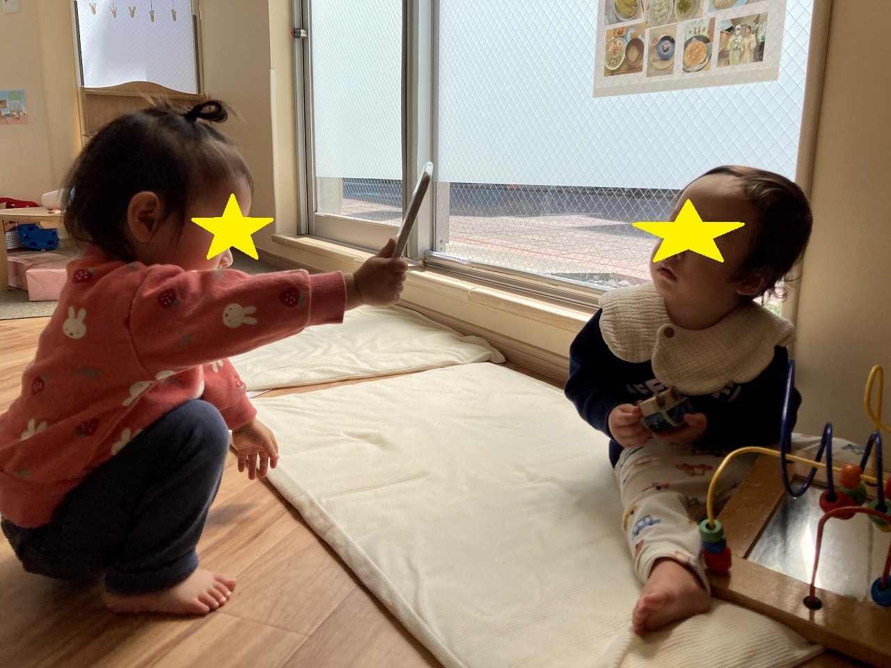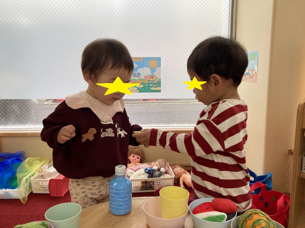 玩具を渡し合ったり、一緒に眺めたり…💕